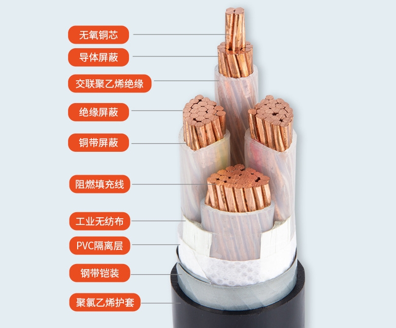 (3)結(jié)構(gòu)、品種。一般電纜的護(hù)層是由內(nèi)護(hù)套、內(nèi)襯層、鎧裝層和外被層(或外護(hù)套)等幾個(gè)部分有挑選的組合而成,充油電纜的護(hù)層有必要有加強(qiáng)層。為適應(yīng)不同環(huán)境場(chǎng)合的需要,護(hù)層在制作時(shí),能夠選用這幾個(gè)部分不同組合的結(jié)構(gòu),因而在實(shí)際運(yùn)用中,應(yīng)注意按不同的用處挑選不同結(jié)構(gòu)的護(hù)層。